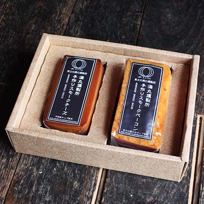 満丸燻製所 手作りスモークチーズ一本とスモークベーコンのギフトセット【次回出荷:11月1日(土)発送】